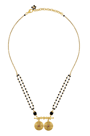 Close-up of a traditional Indian gold and diamond necklace with intricate design and craftsmanship.Diamond Mangalsutra